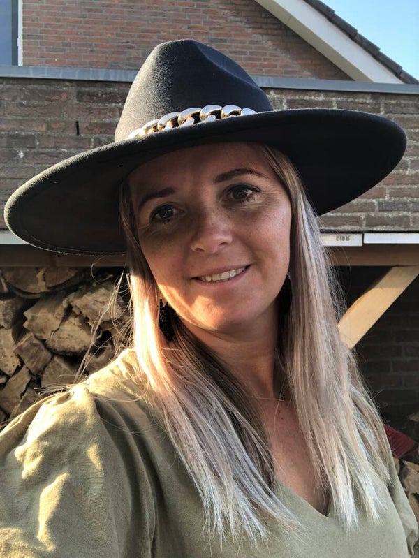 Fedora hoed zwart met mooie ketting.