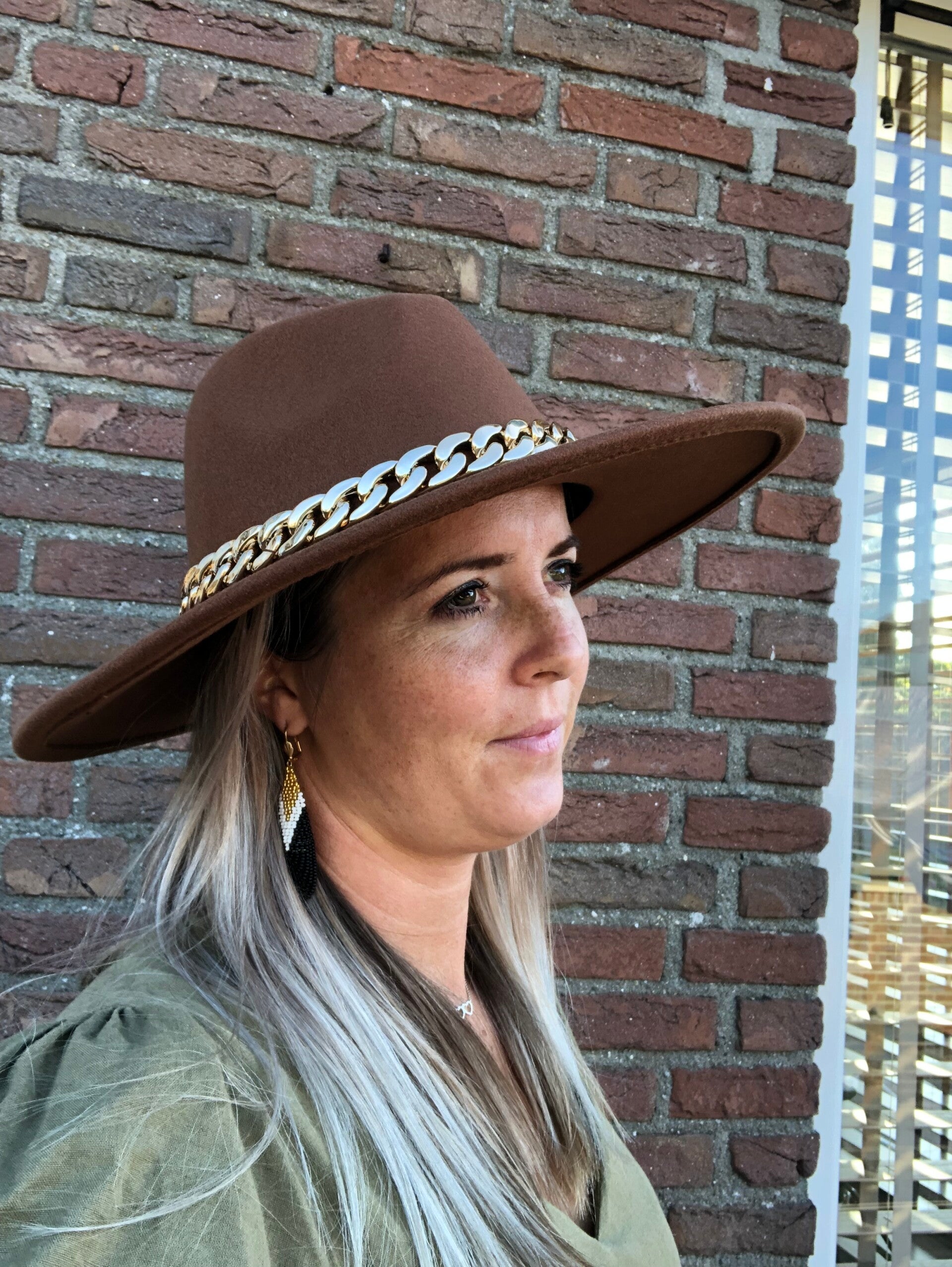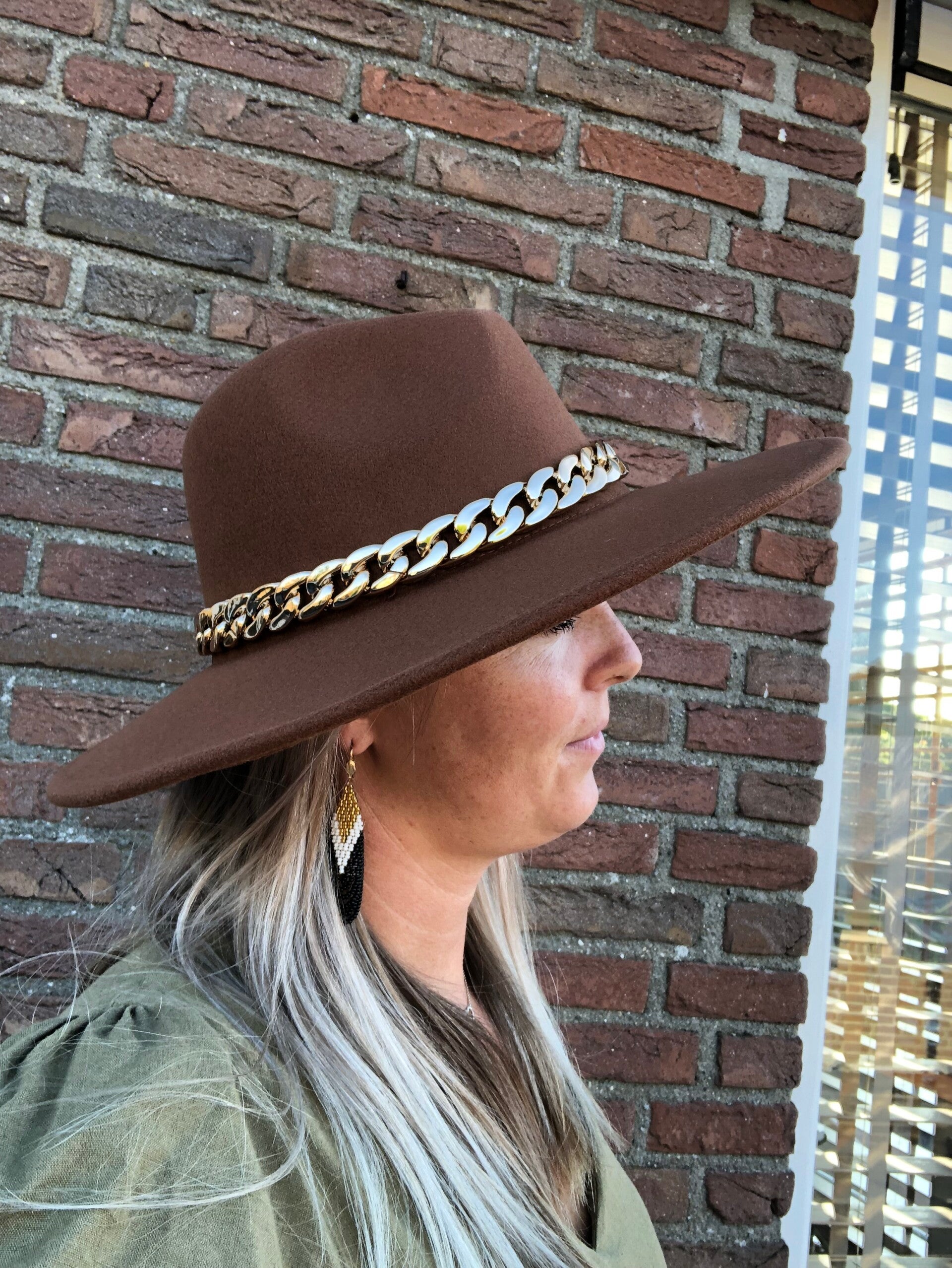 Fedora hoed bruin is te stellen met een lus aan de binnenkant