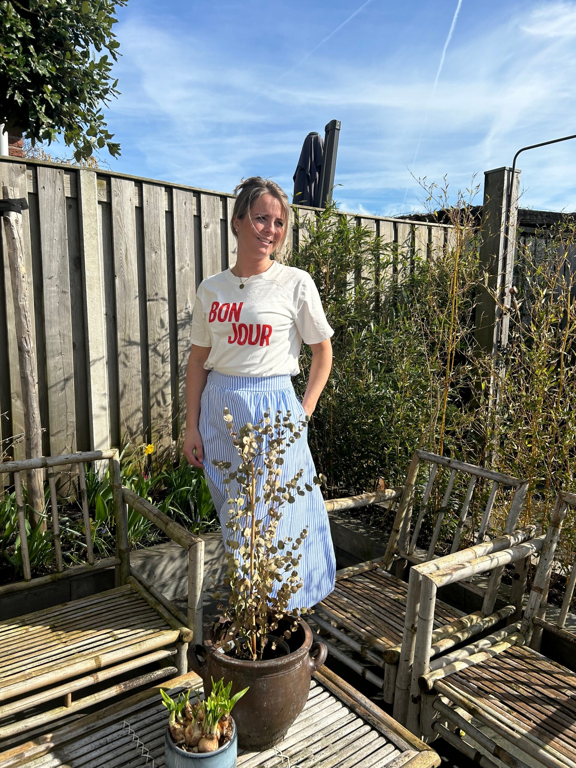 Shirt Bonjour met rode letters