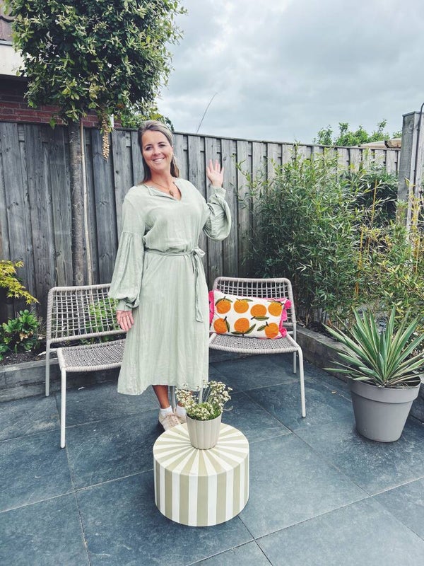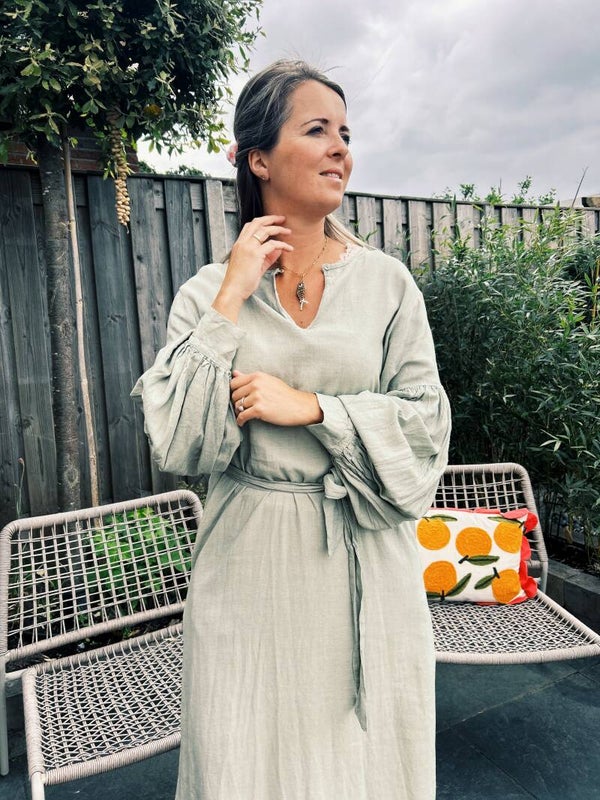 100% katoen, een heerlijke luchtige jurk maar nu ook al ideaal om te dragen!