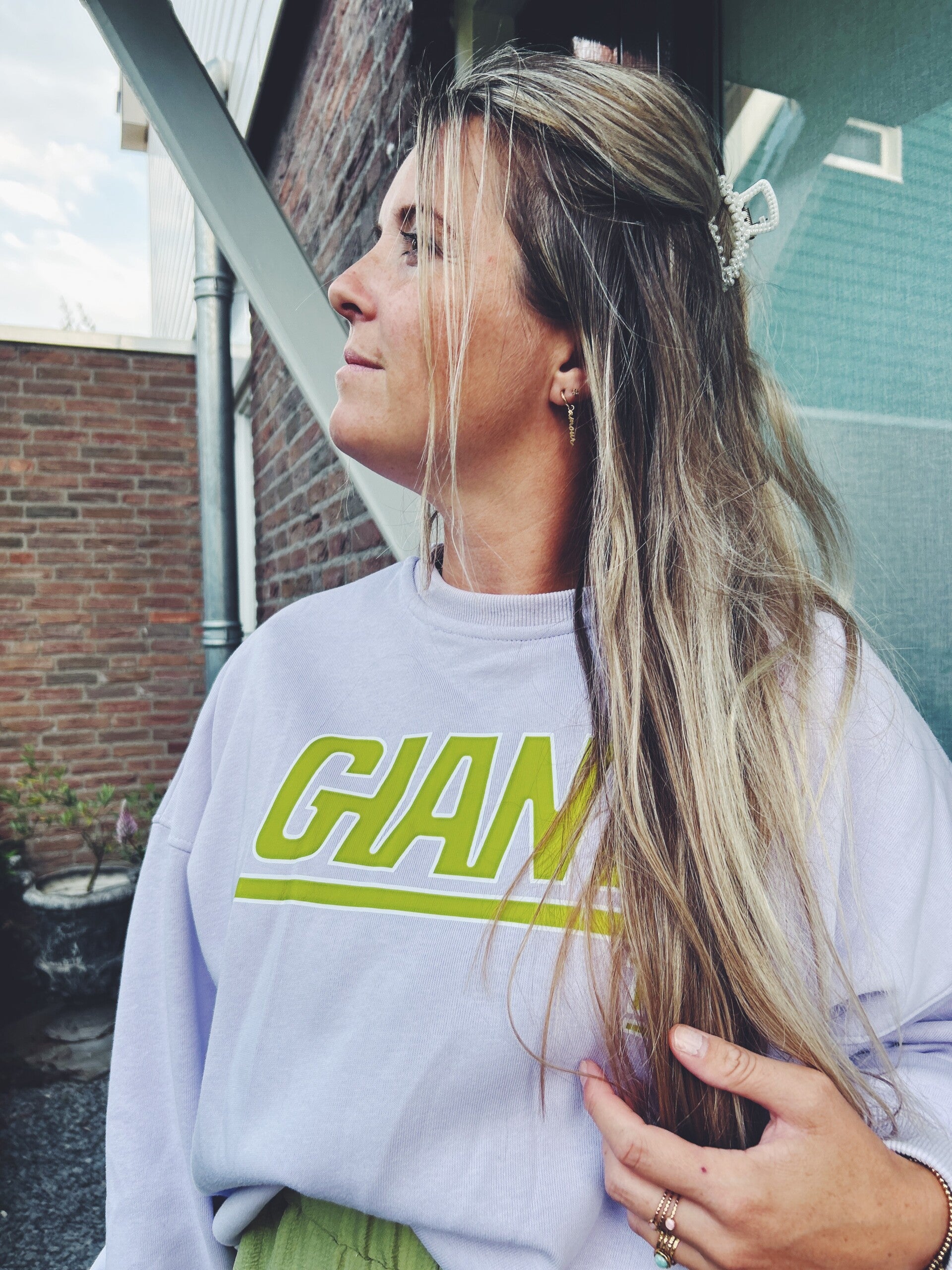 De Giants Sweater is je nieuwe favoriete trui! Met een oversized pasvorm biedt deze sweater een relaxte, trendy look. De zachte stof zorgt voor een heerlijk comfortabel gevoel de hele dag door. Perfect te combineren voor een casual, stijlvolle outfit. Een must-have voor de koudere dagen!