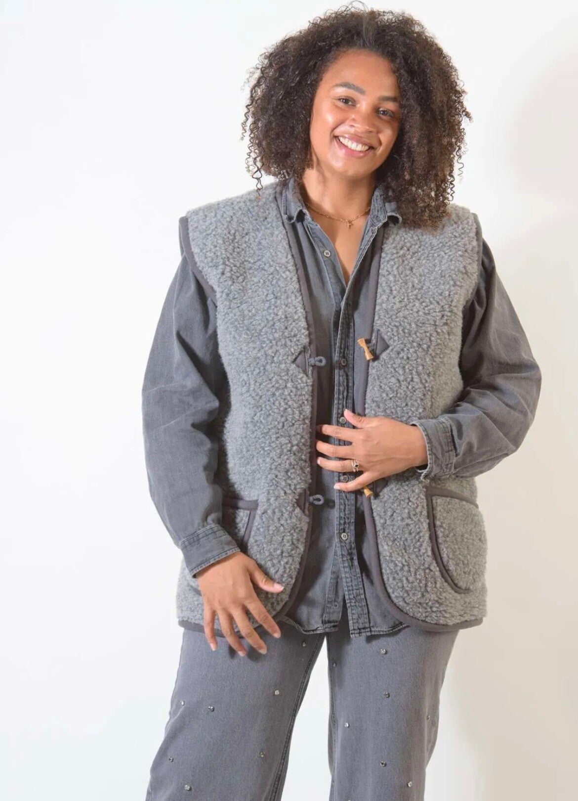 Deze 100% merino wollen bodywarmer donkergrijs is handgemaakt, met respect voor dier en milieu. Alle wol komt bij kleine boerderijen vandaan waar de schapen vrij rond kunnen lopen.