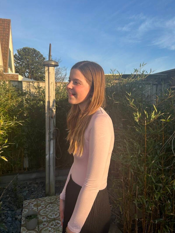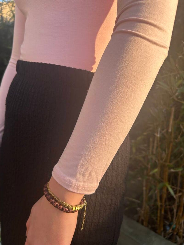 hele mooie strakke top zacht roze, deze is ook weer handig te combineren met het zacht roze blousje!