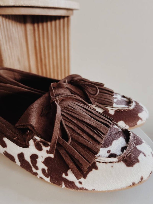 Deze unieke loafer in koeienprint is een statement-piece dat luxe en comfort combineert. Het zachte oppervlak van bont geeft een exclusieve uitstraling, terwijl de flexibele zool zorgt voor optimaal comfort en duurzaamheid.
