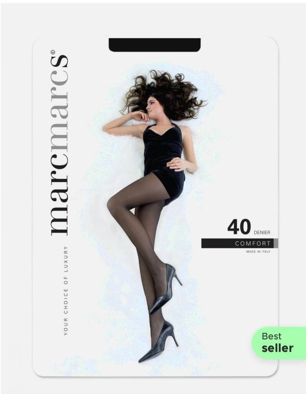 Deze populaire Marcmarcs Comfort 40 denier panty is een mooie comfortabele panty die een lichte glans optiek heeft. De panty is semi-opaque in optiek en geeft dus een mooie egale uitstraling aan het been. De panty heeft een lichte ondersteuning met daarbij een comfortabele brede band in de taille zodat deze niet snijdt in de buik/heupen. De aflopende druk in deze 40 denier panty van Marcmarcs bevordert de bloedcirculatie en helpt hierdoor vermoeide benen te voorkomen. Een leuke bijkomstigheid is dat deze panty als beste uit de Volkskrant panty test is gekomen. Deze MarcMarcs Comfort 40 denier scoorde hoog door het comfortabele draagcomfort en de mooie mate van doorschijnendheid. Hij kreeg na het wassen nog steeds een erg hoge beoordeling waardoor deze panty in vele gevallen een goede keuze is.