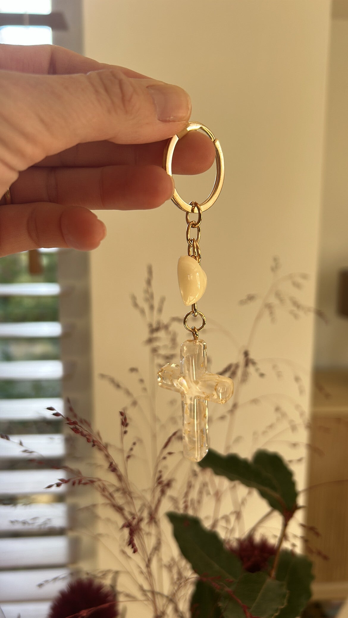 Deze sleutelhanger met kruisje is meer dan een accessoire. Het is een stille, dagelijkse herinnering aan Gods liefde, genade en bescherming. Het kruis verwijst naar het grootste geschenk dat ons gegeven is: