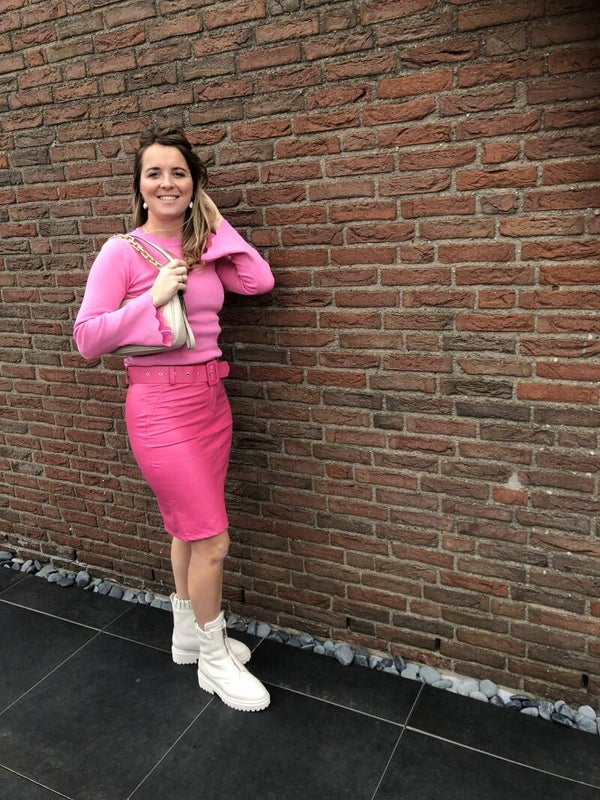 Roze Leather rok, fleurig voor dit voorjaar met riem!