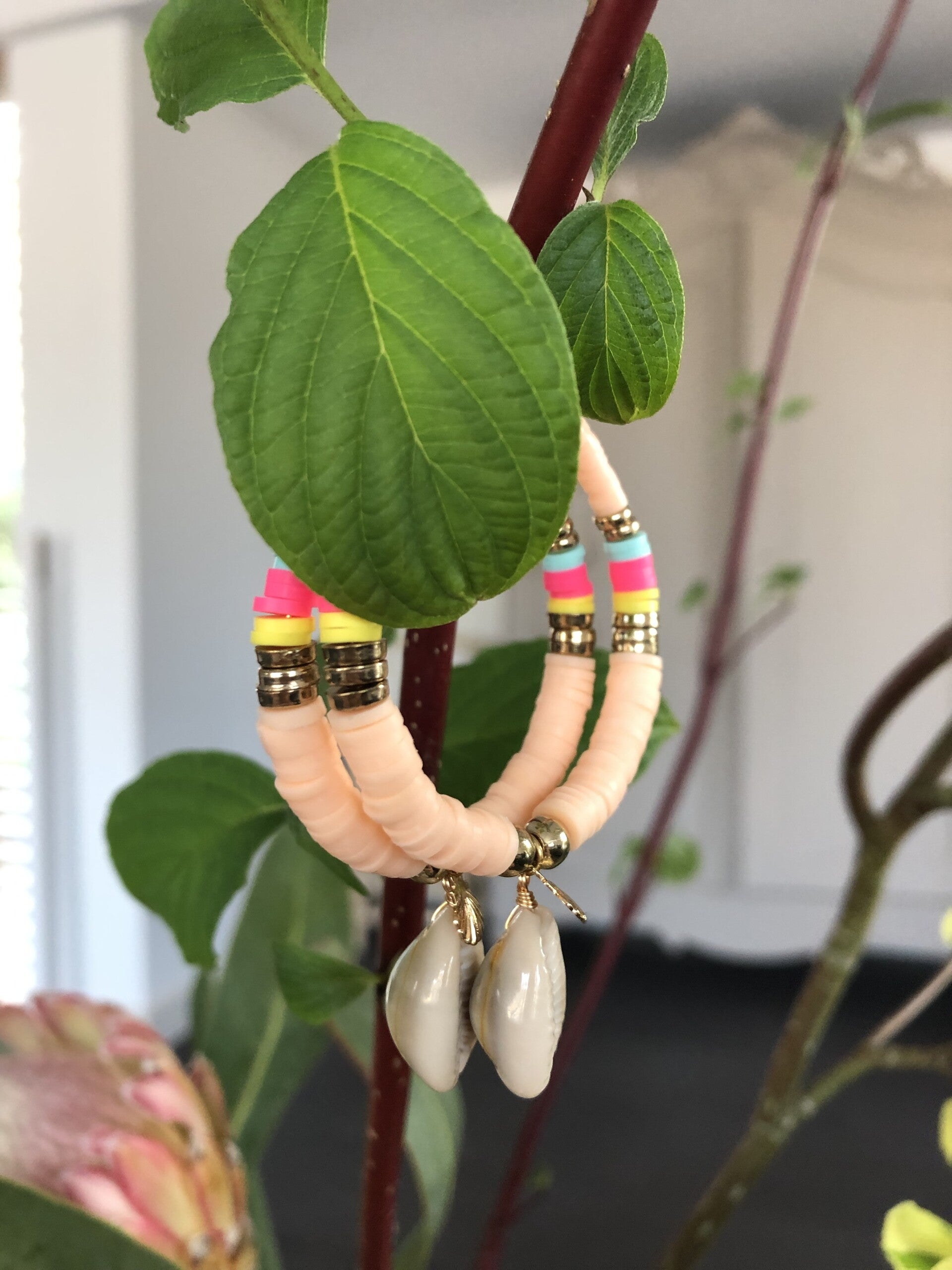Geweldige Ibiza oorbellen, fleurig met schelpje eraan voor de zomer