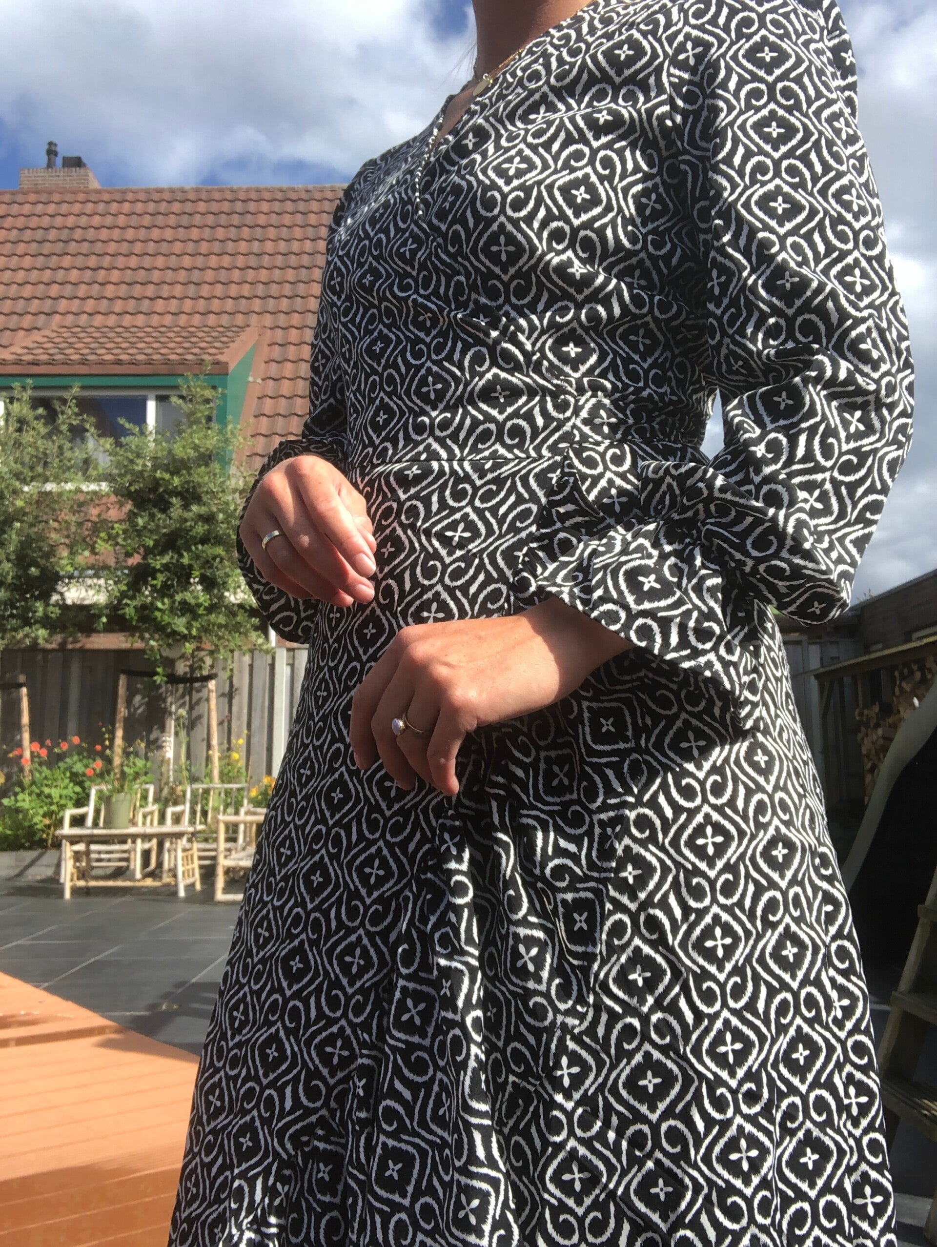 Prachtige wikkeljurk wit/zwart