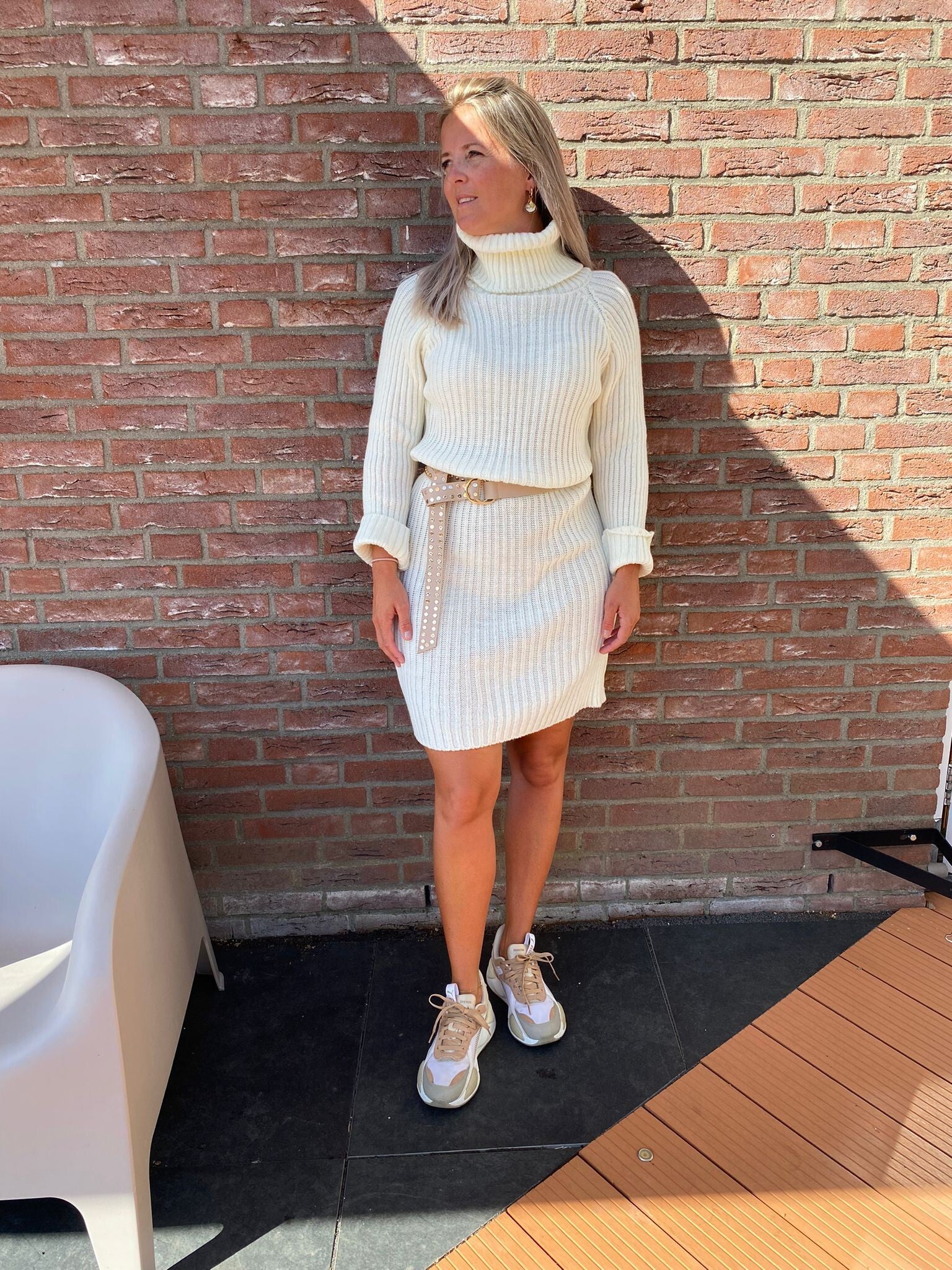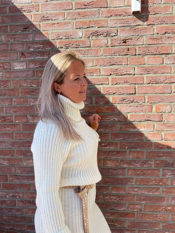 Chloe Off white kol jurk grove ribbel