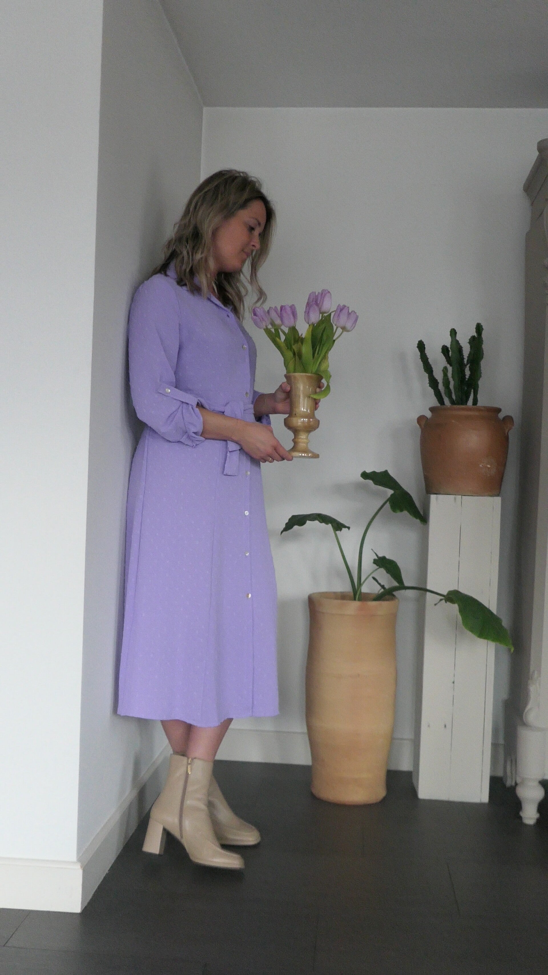 Een prachtige paarse one size dress met ceintuur. De dress heeft een mooie half lange lengte!