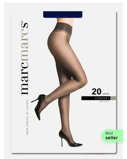 De MarcMarcs Comfort 20 is een prettige panty welke in elke basiscollectie thuishoort. Deze matte panty is fijn om in uw kast te hebben met een avondje uit in het verschiet of simpelweg een avond waarop een basispanty een must om het been is. De platte naden en de versterkte teen voelen fijn aan om het been en geven dan ook geen irritatie. De 20 denier comfort panty heeft een semi opaque optiek en is voorzien van een versterkte teen met ladderstop en een brede comfortband om de taille. De Comfort 20 heeft een zeer platte naad en katoenen kruisje.